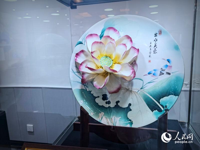 使用唐白瓷燒制技藝做出來的牡丹花,雍容華貴,端莊典雅,被譽為“永不凋謝的牡丹花”。人民網記者 尚明楨 攝