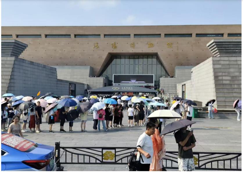 記者向多家博物館負(fù)責(zé)人了解接待游客數(shù)量、“博物館經(jīng)濟(jì)”等情況,發(fā)現(xiàn)洛陽各大博物館已成國內(nèi)外游客來豫旅行的熱門選擇。很多博物館今年暑期“一票難求”,游客們不惜在酷烈的太陽下排隊(duì)數(shù)十分鐘,也要一睹洛陽各大博物館的風(fēng)采。