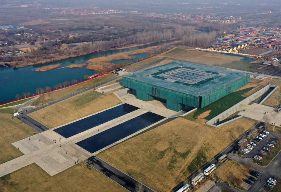這是2024年2月26日拍攝的位于河南省安陽市的殷墟博物館新館(無人機照片)。新華社記者 李安攝 一城文韻藏,三千年文脈綿延