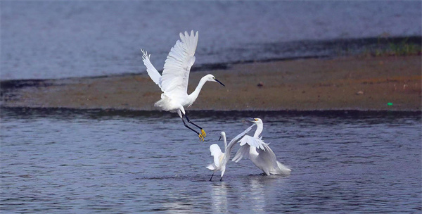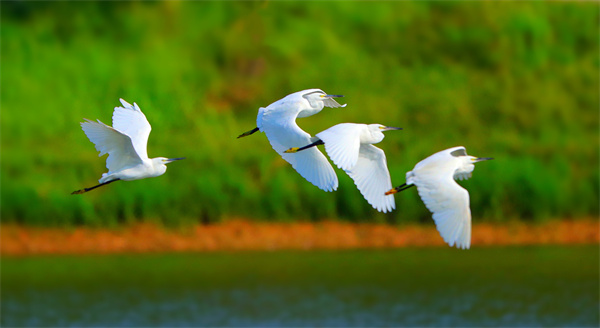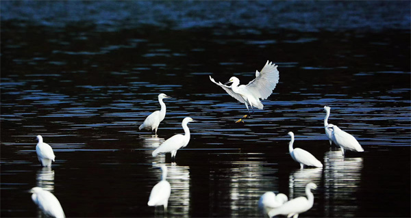 圖為粼粼碧波之上,白鷺翱翔的壯美畫卷,美不勝收。