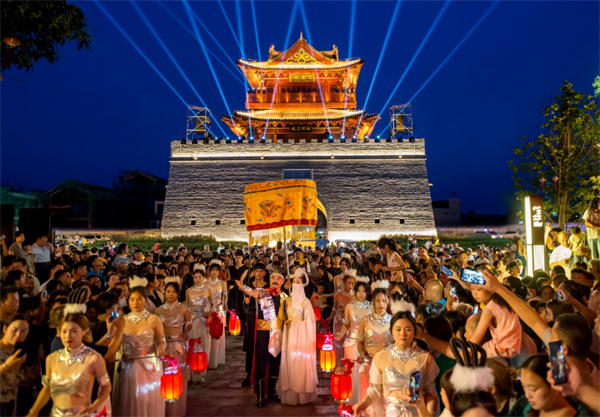 創(chuàng)新實(shí)景演藝,“再現(xiàn)”殷商繁華。夜空為穹頂,遺址當(dāng)舞臺(tái),樓閣做背景,每到節(jié)假日,《朝歌盛世》在朝歌遺址公園開演,一個(gè)個(gè)《封神演義》小說中的人物穿越時(shí)空,勾勒出盛世朝歌的萬千氣象。每當(dāng)夜幕降臨,朝歌老街便因《大商朝歌》實(shí)景演出而變得人山人海。2024年“五一”假期,朝陽山《大商盛宴》主題演出讓游客變身“封神人物”。淇縣文旅集團(tuán)相關(guān)負(fù)責(zé)人介紹,他們深挖封神文化資源,持續(xù)對旅游演藝項(xiàng)目進(jìn)行多維度創(chuàng)新,并在景區(qū)增加交互表演橋段,讓旗下景區(qū)成為游客心中別具一格的打卡地。