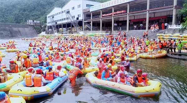 “我公司又加投了800余條漂流船,為避免隊伍擁擠,我們引導(dǎo)游客錯峰出行,并將上下碼頭服務(wù)人員和沿線河道安全管理人員由原來的600余人增至1000多人。”堯山景區(qū)附近的一家漂流公司營銷總經(jīng)理劉增益介紹道。