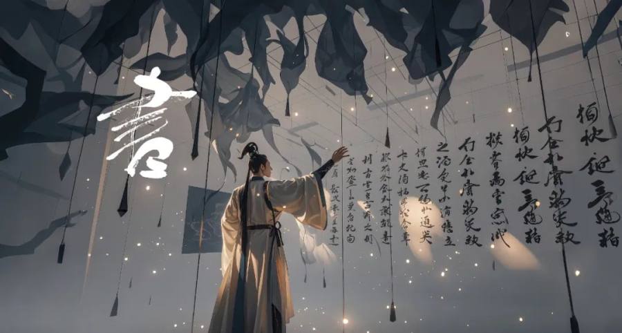 蒼勁有力的宋代書法字在空中迎風飄動。