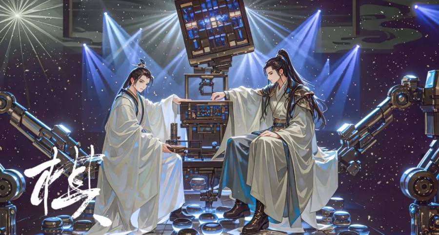 在“琴”境中,一位穿著白衣的男子輕拂古琴,
