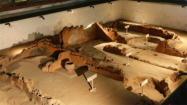大河村遺址博物館迄今仍保留著一方探坑,在灰坑、墓穴、窖穴之間,5000多年前的地基赫然可見。