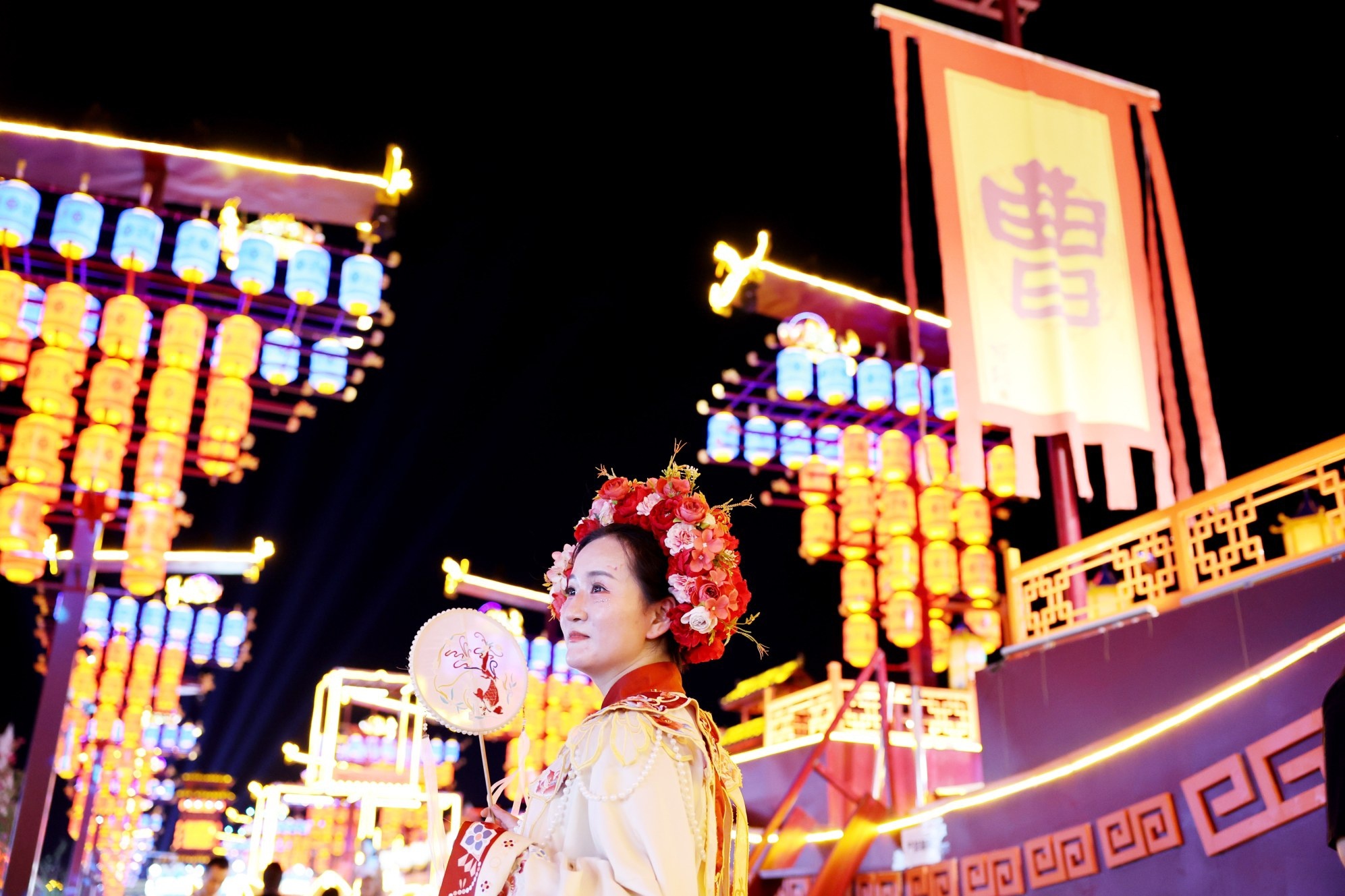 樓榭重重再現(xiàn)帝都繁華,古巷深深重諳三國風采。今年,曹魏古城推出“三國世界之龍騰四海”特別活動,開展三國潮派對、關(guān)帝巡游、三國世界主題音樂現(xiàn)場、NPC互動等活動,吸引大量游客穿著漢服、戴著簪花游曹魏古城。