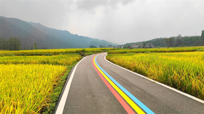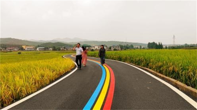為吸引更多游客,進(jìn)一步打造美麗鄉(xiāng)村,一周前,在趙村鎮(zhèn)黨委、政府幫助下,此前通往“網(wǎng)紅稻田”的水泥村道如今全部鋪成了柏油“彩虹路”。