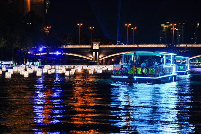 “微微風(fēng)簇浪,散作滿河星。”夜幕低垂,八點整,湖畔碼頭被國潮音樂的旋律圍繞,引領(lǐng)著賓客們步入一場歷史與現(xiàn)代的交融盛宴。