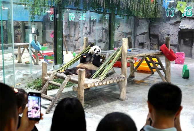 竹海野生動(dòng)物園里的大熊貓靈巖憨態(tài)可掬 鄧放攝