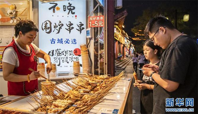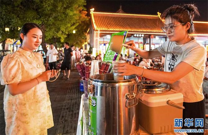 9月8日,河南省商丘市睢陽區(qū)商丘古城,游客在購買小吃。
