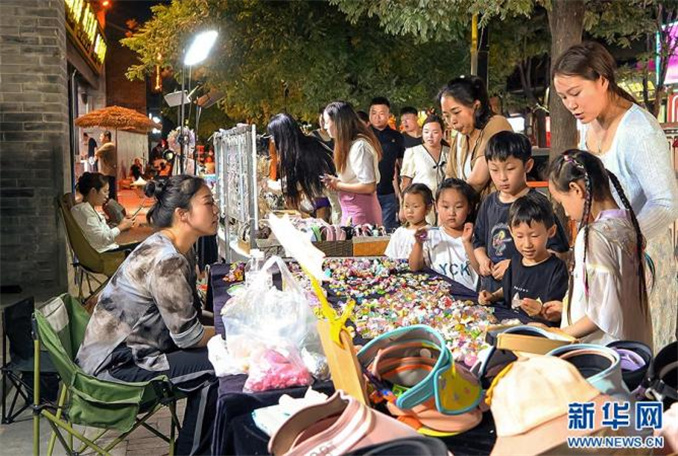 9月8日,河南省商丘市睢陽區(qū)商丘古城,游客在購買商品。