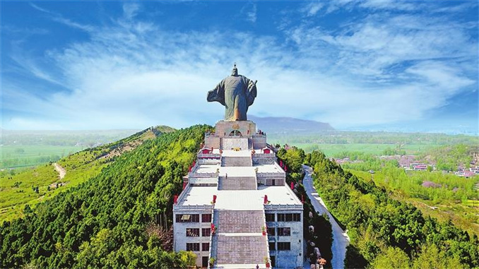 矗立于永城芒碭山主峰的漢高祖劉邦鑄銅雕像。 劉正義 攝