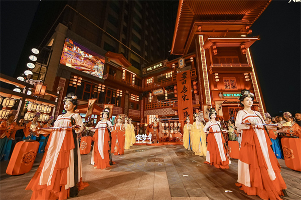 唐風(fēng)宋韻下的市井煙火是什么樣的?9月14日傍晚,位于鄭州市二七區(qū)的中鐵·泰和里“唐宋夢華”主題街區(qū)入夜首映禮璀璨啟幕。步入其間,市民仿佛一秒夢回千年,一步踏入畫中,沉浸式體驗(yàn)?zāi)枪爬系娘L(fēng)情。