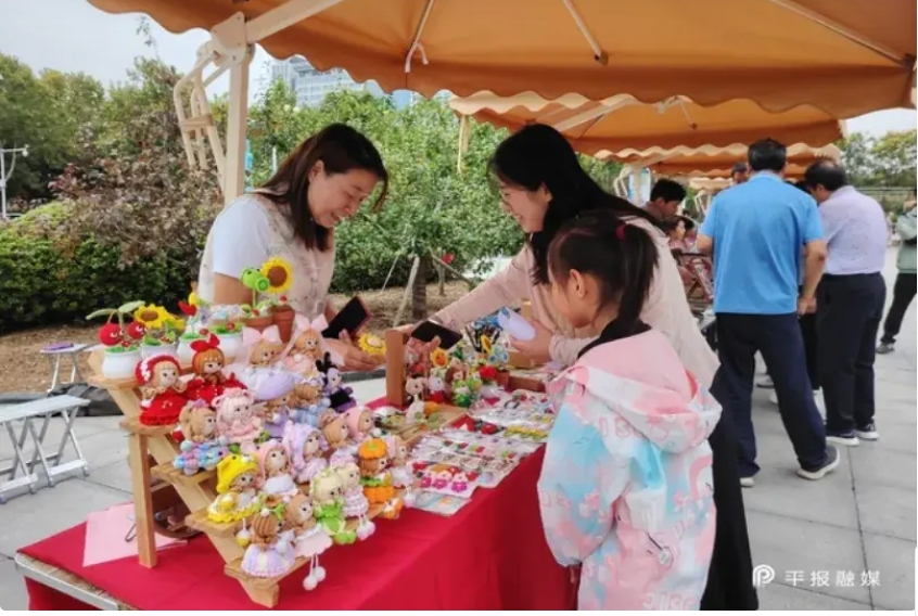 平頂山工業(yè)職業(yè)技術學院飛鷹匠薪創(chuàng)新創(chuàng)業(yè)團隊成立于2023年,致力于鷹城非遺文創(chuàng)設計,該團隊在指導老師武麗芳的帶領下,攜陶瓷材質的冰箱貼、手串等文創(chuàng)產品到現(xiàn)場參加活動,受到年輕人的歡迎。