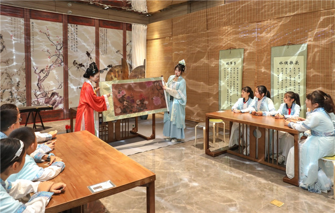 在開封、洛陽兩地,依據(jù)當?shù)貧v史文化資源,河南美術(shù)出版社與開封市新華書店、洛陽市新華書店在紙質(zhì)圖書“讀懂中國畫”系列的基礎上,共同落地《洛神賦圖》《清明上河圖》沉浸式文化體驗項目,帶學生穿著古裝,穿越進一幅名畫,“認領(lǐng)”一個角色,“認識”一群文人雅士,接受一場特殊的美育。