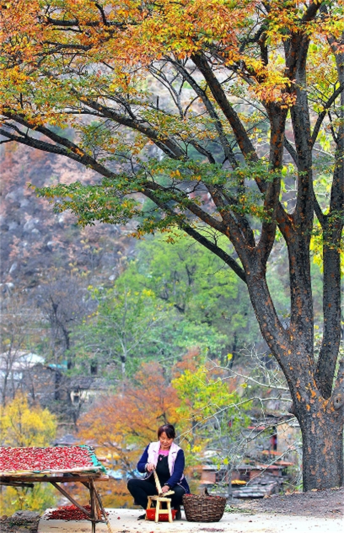 太行大峽谷的秋天,處處彌漫著收獲的氣息,農(nóng)家小院的木棚下掛上沉甸甸的玉米穗兒,竹篩里開始晾曬紅彤彤的山楂果,最喜人的要數(shù)樹上掛著的柿子,讓人垂涎三尺!
