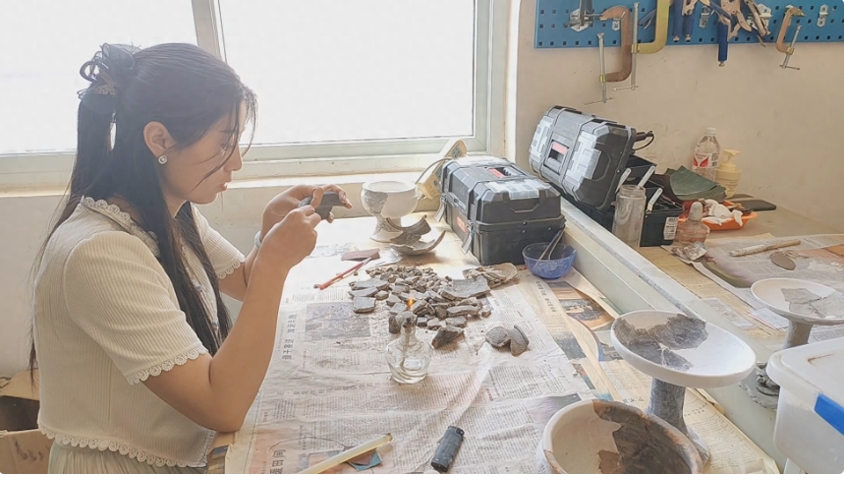 王金香是本地人,深厚的文化底蘊(yùn)耳濡目染,讓她從小就立志從事與文物修復(fù)相關(guān)的工作。“2019年,河南省文物考古研究院信陽(yáng)工作站招人,我毫不猶豫地報(bào)了名。”通過(guò)層層篩選,王金香最終通過(guò)了考核,實(shí)現(xiàn)了兒時(shí)的夢(mèng)想。可是初來(lái)乍到,王金香面對(duì)的卻是巨大的挑戰(zhàn)。“剛進(jìn)入修復(fù)組的時(shí)候,面對(duì)數(shù)不清的碎陶片和一堆泥土,我根本就不知道從哪里下手,使用熱熔膠時(shí),由于不小心,手指經(jīng)常被燙出水泡。”