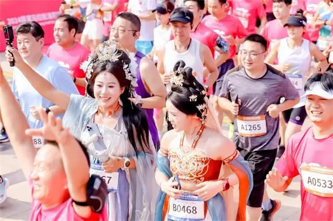 尤為引人注目的是,一支漢服跑團身著華美的傳統(tǒng)服飾,奔跑于賽道上,仿佛穿越時空而來,成為一道亮麗的風景線。他們以獨特的方式展現(xiàn)著中華傳統(tǒng)文化的魅力,為這場國際賽事增添濃郁的國風韻味。