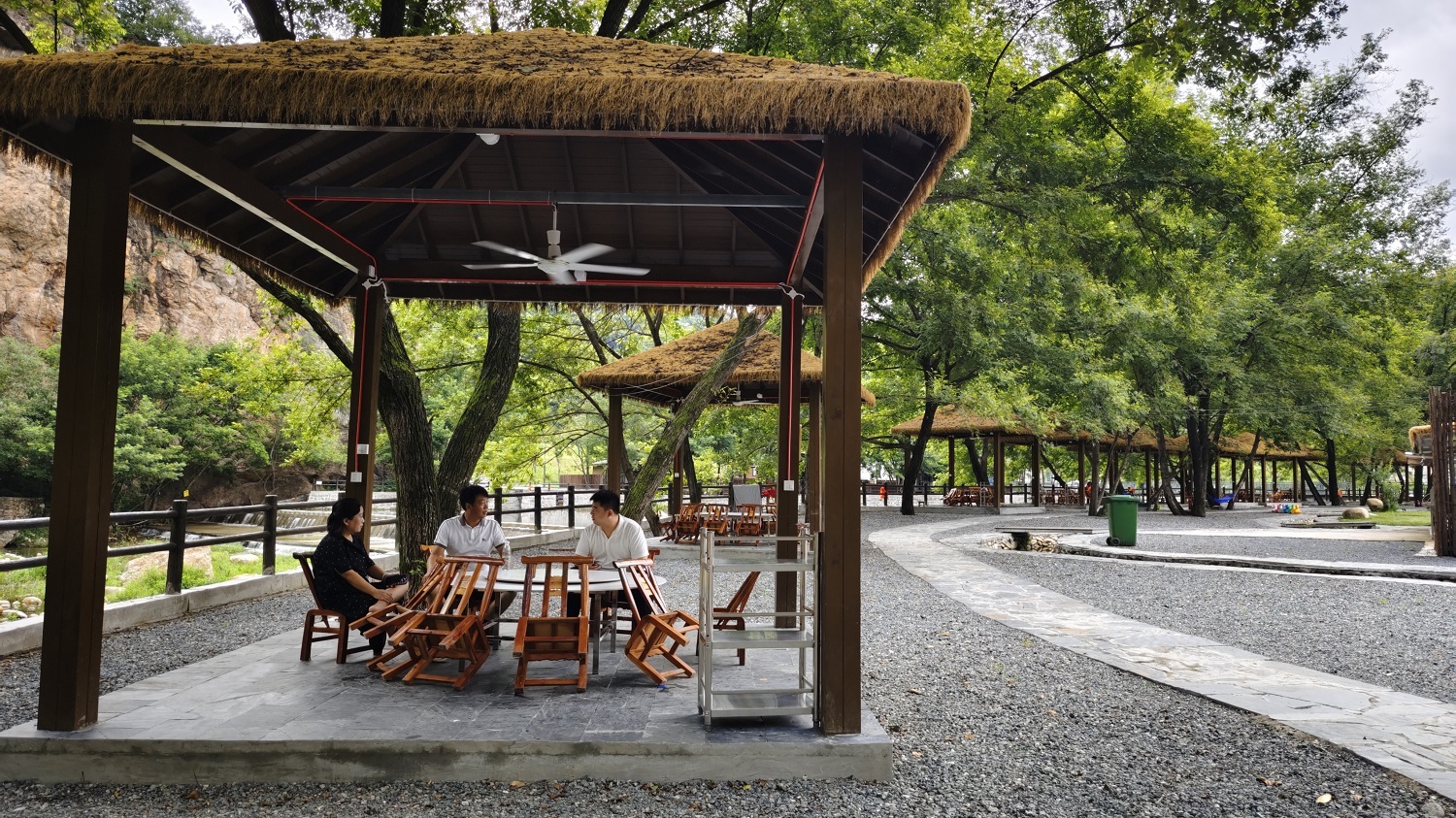 游客在歸園田居民宿涼亭休息 楊天增 攝