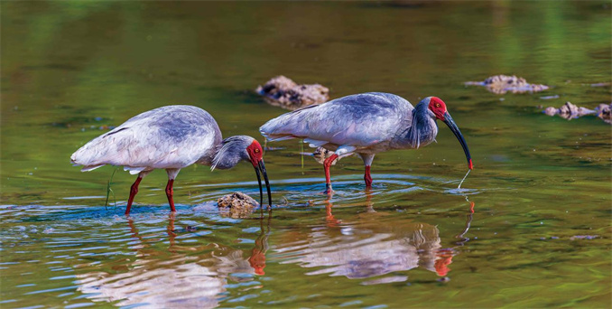 朱鹮戲水 中共羅山縣委宣傳部供圖