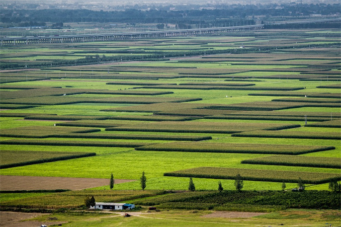 圖為綠色的黃河灘地 。龔首鵬 攝