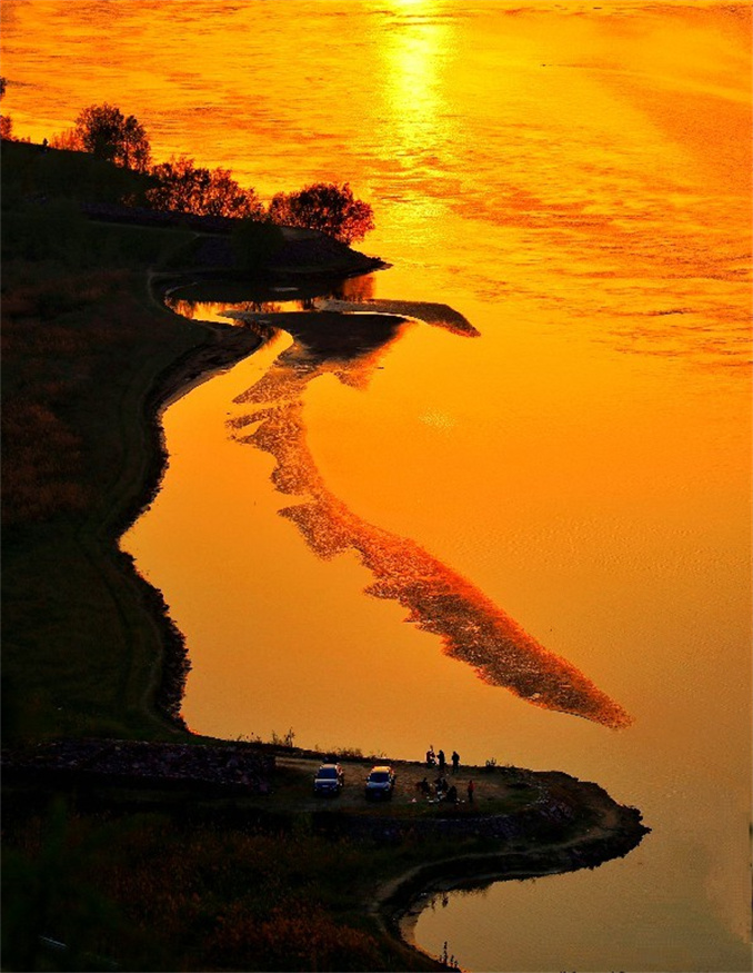 夕陽西下黃河美 田玉青 攝