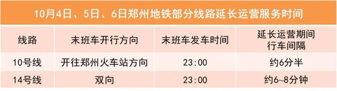 10月4日~6日,鄭州奧林匹克體育中心將舉行大型活動(dòng),根據(jù)前期客流特點(diǎn),鄭州地鐵10號(hào)線(xiàn)、14號(hào)線(xiàn)延長(zhǎng)運(yùn)營(yíng)服務(wù)時(shí)間,保障乘客平安、順暢出行。