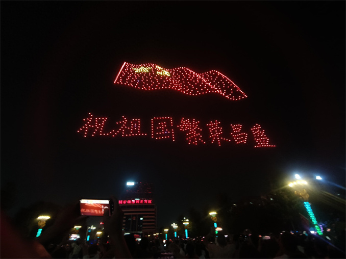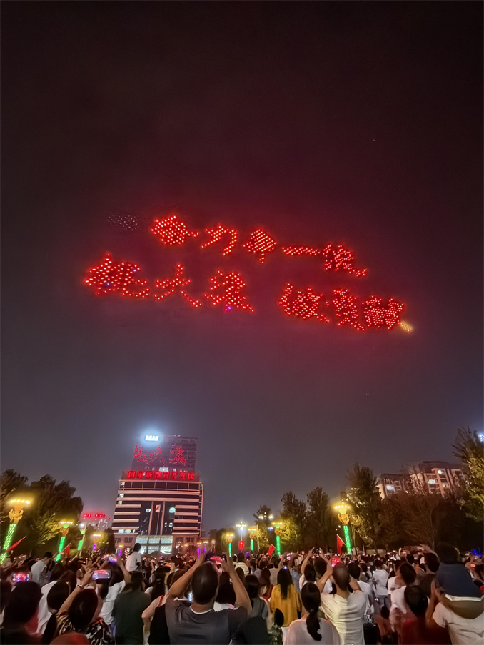 “迎國慶千機飛”無人機表演活動吸引了眾多市民和游客前來觀看,現(xiàn)場氣氛熱烈,成為漯河市夜晚的一道亮麗風景線。