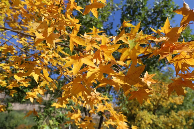 金秋,紅葉飛舞,層林盡染,暖陽灑下,水面流金閃爍,恰似世外桃源,令人如癡如醉。