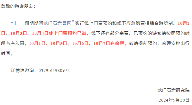 您的當(dāng)前位置:網(wǎng)站首頁 > 出行資訊 > >龍門石窟景區(qū)預(yù)約門票提醒