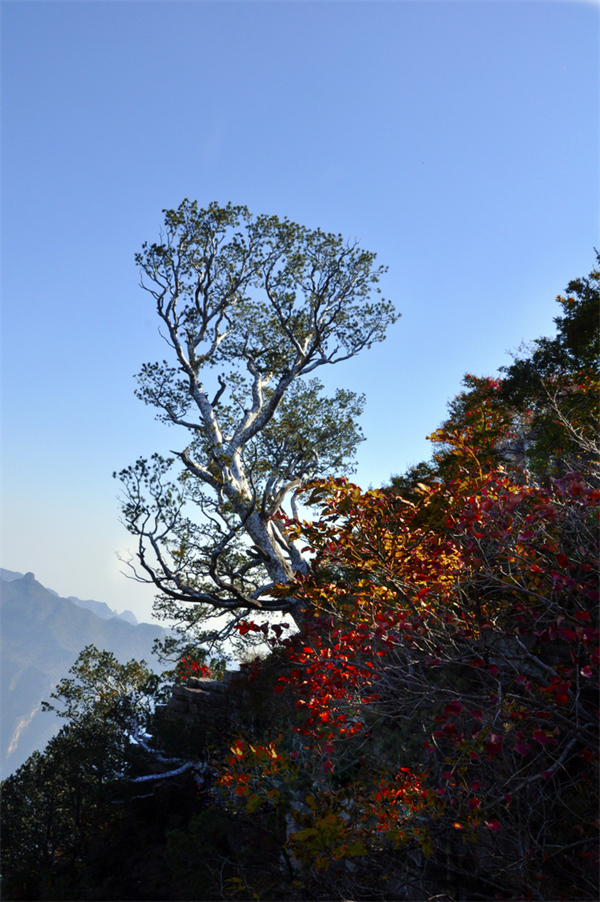神農(nóng)山白皮松傲立于秋季的懸崖之上