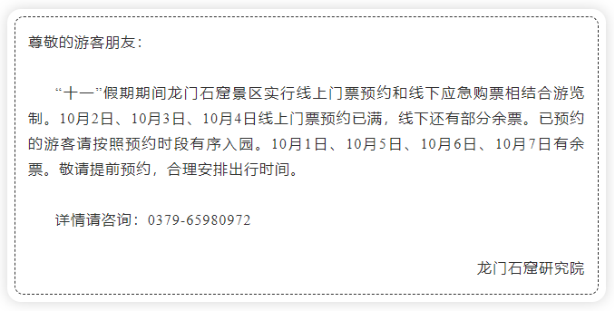您的當(dāng)前位置:網(wǎng)站首頁 > 出行資訊 > >緊急提醒!洛陽多家景區(qū)、博物館預(yù)約已滿