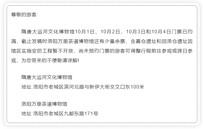 緊急提醒!洛陽多家景區(qū)、博物館預(yù)約已滿