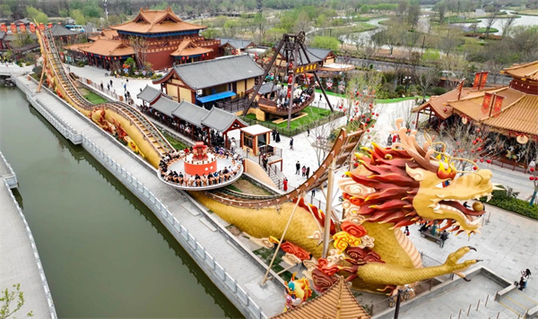 過山車《龍騰鼓舞》增加宋代擊鼓元素,伴隨音樂節(jié)奏,動感十足,讓游客擁有騰云駕霧的沉浸體驗,巨龍騰飛時,俯瞰大宋繁華盛世。