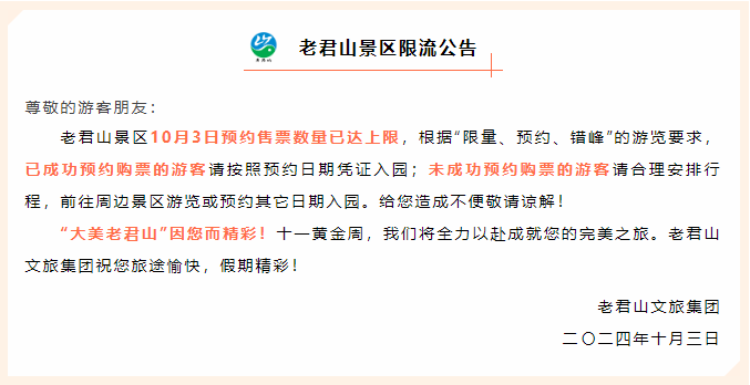 老君山景區(qū)10月3日限流公告