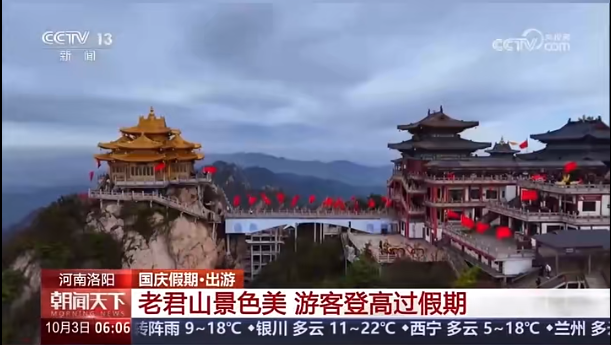 10月3日,央視新聞?lì)l道《朝聞天下》報(bào)道《河南洛陽 老君山景色美 游客登高過假期》。讓老君山的美麗風(fēng)光走進(jìn)了更多人的視野。