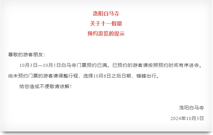 洛陽(yáng)多個(gè)景區(qū)發(fā)布緊急公告!
