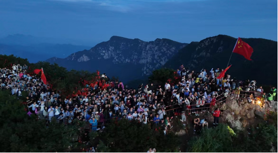 10月1日,當(dāng)?shù)谝豢|晨光灑向嵩山,學(xué)子們齊聚峻極峰頂,共同高聲唱響國(guó)歌,深情表白歌唱祖國(guó),為祖國(guó)母親送上祝福。
