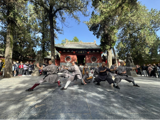 一入少林,便是江湖。精彩絕倫的“印象少林”大型迎賓儀式在游客中心廣場(chǎng)準(zhǔn)時(shí)上演,少林常住院門口,由少林武僧帶來少林鎮(zhèn)山棍表演震撼人心,作為今年景區(qū)的新節(jié)目,初次亮相,其精湛的武藝贏得觀眾陣陣喝彩,成為活動(dòng)中的一大亮點(diǎn)。此外,“國(guó)潮風(fēng)尚 禮贊祖國(guó)”互動(dòng)體驗(yàn)活動(dòng)吸引大量游客前來參與,小紅旗、國(guó)慶臉貼、互動(dòng)打卡手牌、可愛玩偶……游客們?cè)诰皡^(qū)各個(gè)標(biāo)志性景點(diǎn)拍照,他們手持小紅旗,臉上洋溢出燦爛的笑容。