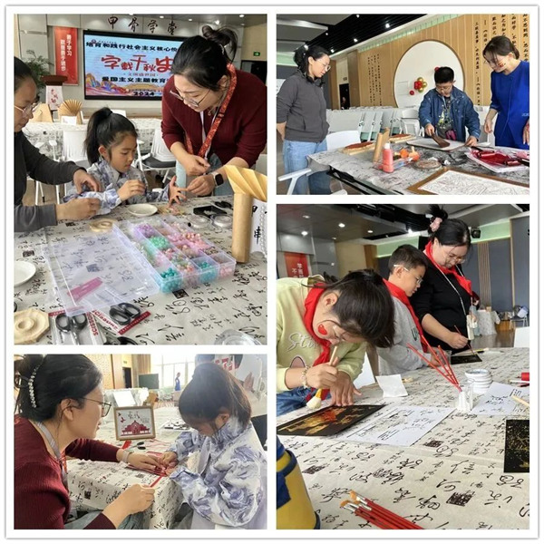 為慶祝中華人民共和國成立75周年,中國文字博物館在十一當(dāng)天還開展了“字載千秋史·文頌盛世國”國慶奇妙游園會活動。“刻骨銘心”“甲骨凝華·串珠成韻”“印刻古藝·墨染華章”以及“套色之美·彩印文輝”等主題活動深受家庭游客的喜愛。