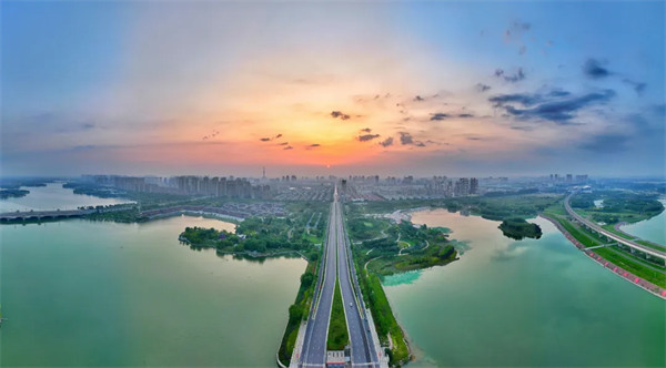 迎著朝霞,從空中俯瞰黑崗口調(diào)蓄水庫,樹木郁郁蔥蔥,水面碧波蕩漾。這里景色優(yōu)美,是假日休閑放松的好去處。
