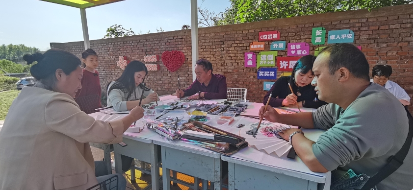 活動(dòng)伊始,來自各地的文化名家齊聚一堂,以嵩縣歷史文化和陸渾湖為靈感,開展一系列書畫創(chuàng)作。一幅幅精美的書畫作品不僅展現(xiàn)藝術(shù)家們的卓越才華,更生動(dòng)描繪嵩縣山水的獨(dú)特韻味和陸渾湖的秀麗風(fēng)光。這些作品吸引眾多游客駐足觀賞。