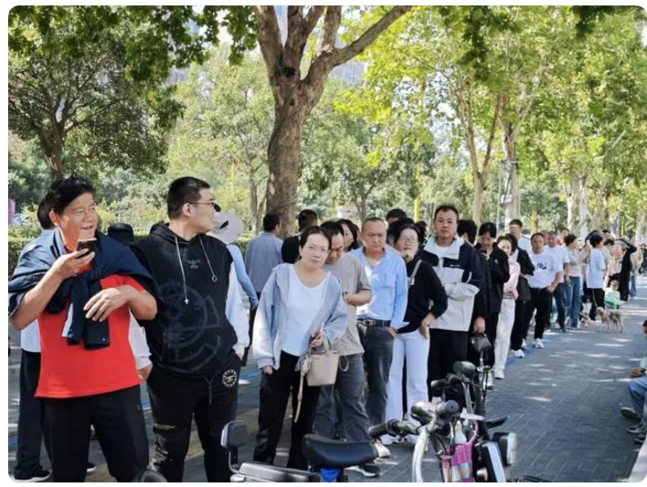 由于客流量太大,隊(duì)伍拐了好幾個(gè)彎,從廣場上排到了樹蔭下的人行道上,目測起碼有上千米。