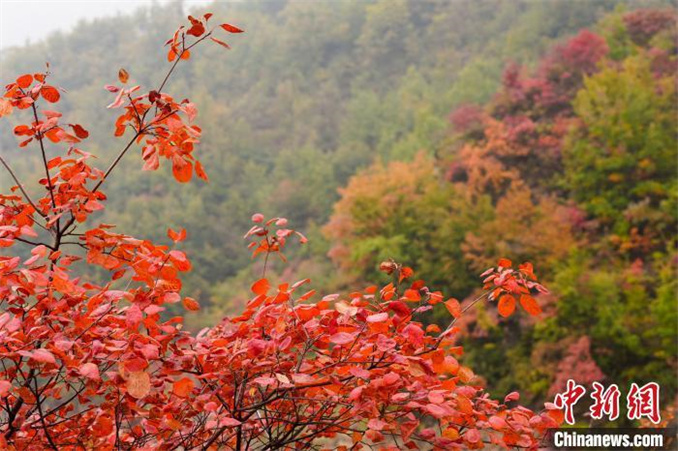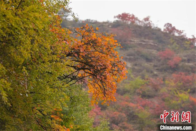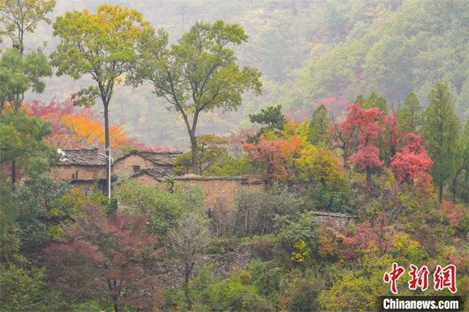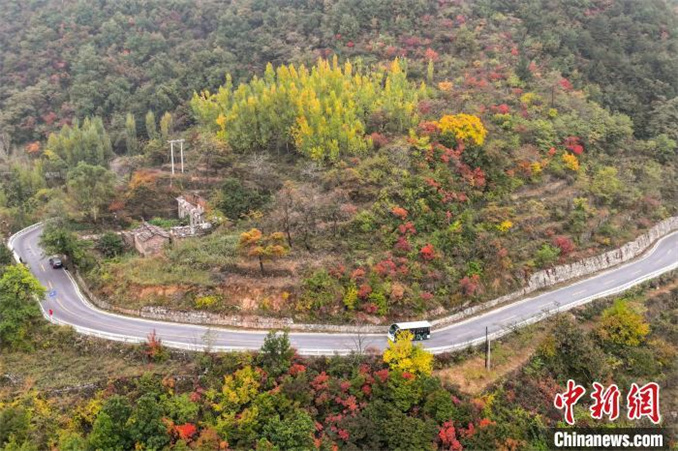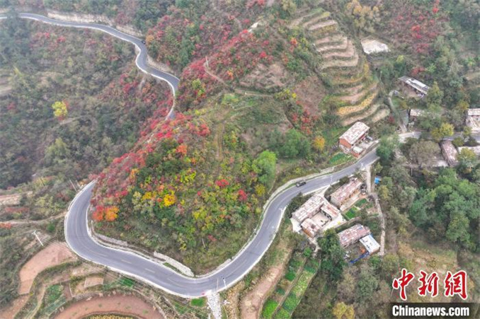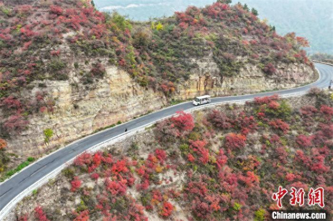 10月16日,河南安陽(yáng)太行大峽谷秋意漸濃,如霞似火的紅葉與青山、綠樹(shù)、村莊相互映襯,構(gòu)成一幅和諧共生的秋日生態(tài)畫(huà)卷。(無(wú)人機(jī)照片) 杜之山 攝