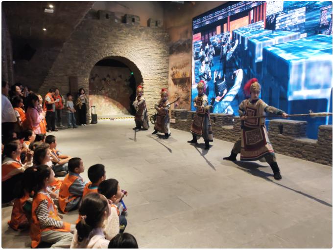 殷墟考古文旅小鎮(zhèn)考古科學體驗館內(nèi),小游客們正在觀看表演。(資料圖)