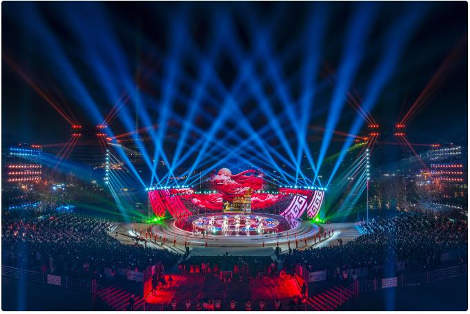 在節(jié)目?jī)?nèi)容上,開(kāi)幕式通過(guò)河洛大鼓、少林功夫、漢劇等演出形式,凝練河圖洛書、漢魏故城、黃河,以及洛水、二里頭龍形器等元素,演繹泱泱中華文明中的經(jīng)典!缎南蚵尻(yáng)》《回家》《聚》等多首原創(chuàng)歌曲在開(kāi)幕式上唱響,絲綢之路、隋唐大運(yùn)河、李白杜甫相會(huì)、孔子老子對(duì)談,以及龍門金剛、飛天洛神也在舞臺(tái)重現(xiàn),讓觀眾穿越千年歷史古跡,領(lǐng)略夢(mèng)幻神都風(fēng)采。
