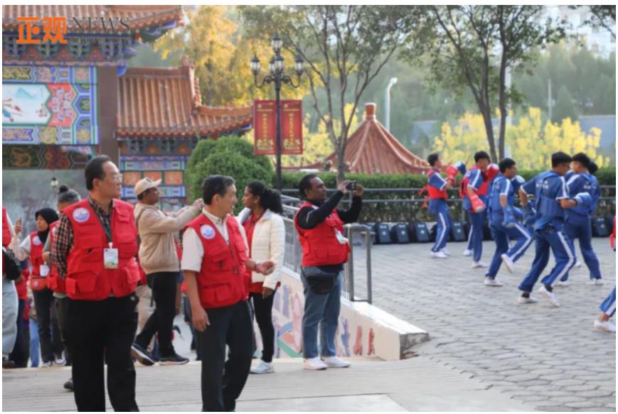 訓練場上,鵝坡少年精神抖擻,口號響亮,一招一式干脆利落,動作標準而有力,引得考察團成員贊嘆連連,紛紛上前與學生合影留念。
