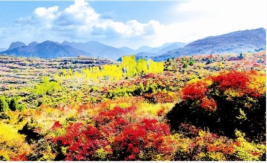 澠池縣坡頭鄉(xiāng)漫山遍野的紅葉進入最佳觀賞期 三門峽日報社供圖