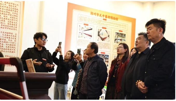 10月25日,參加“豫哈情 文化行”——豫哈文化藝術(shù)交流活動的藝術(shù)家們來到鄭州市天中藝術(shù)博物館,這里成為他們“行走河南·讀懂中國”的重要一站。