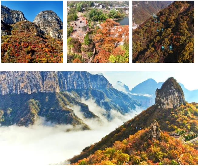 新鄉(xiāng)南太行的秋天,是紅葉的狂歡。漫山遍野的紅葉,如同一團(tuán)團(tuán)燃燒的火焰,將整個山林裝扮得格外壯觀。
